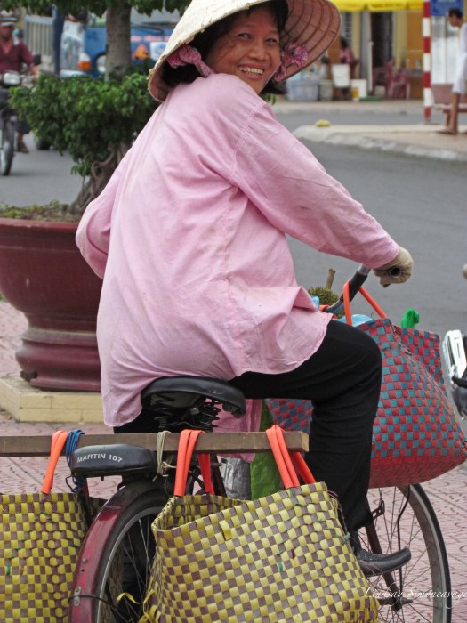 A My Tho local on her bicycle. She was quite happy to see me and kept turning around to smile at me.